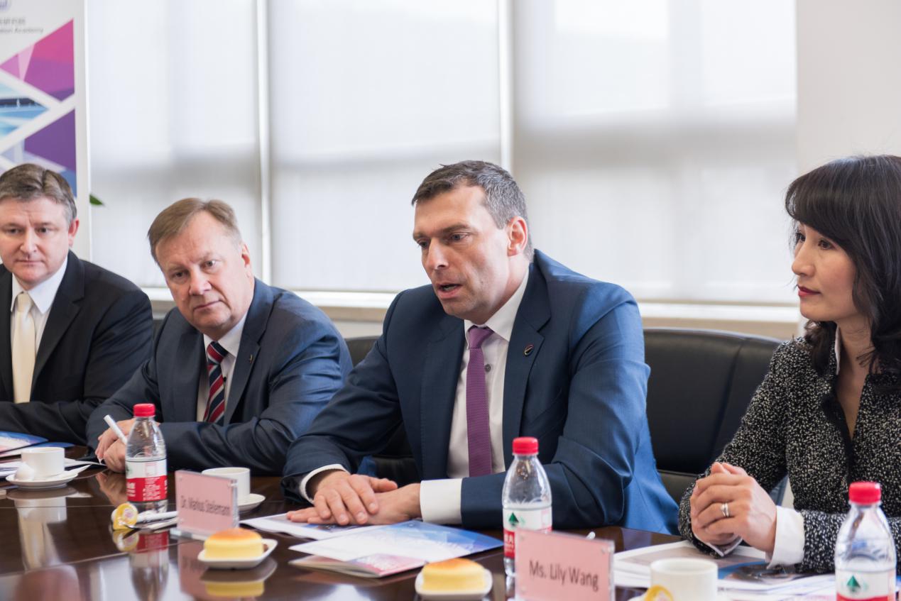 会前,pg国际电子网站常务副校长伍江教授与研究院指导委员会成员进行了亲切会谈。伍江校长向施乐文博士介绍了依托pg国际电子网站新成立的上海自主智能无人系统科学中心,希望pg国际电子网站与科思创能够强强联合、优势互补、携手共进,加快创新成果产业化步伐。