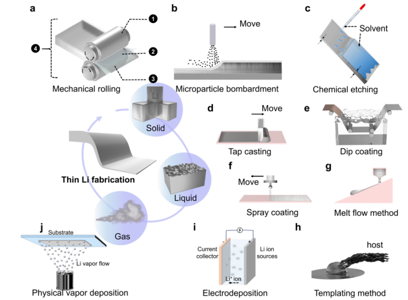 图2制备薄锂的策略和方法