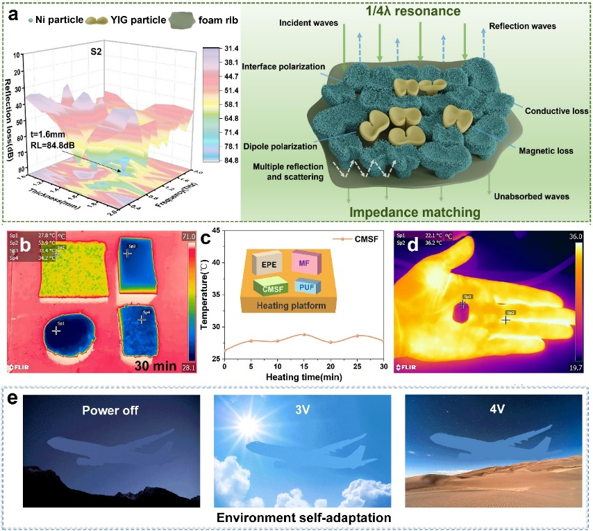 这项研究工作在复合材料自我感知能力、自我防护能力和适时应变能力方面取得了重要进展,为装备自主感知和智能电磁防护开辟了新方向,也为未来可穿戴设备、智能装备、健康监测等领域的研发提供了理论支撑。