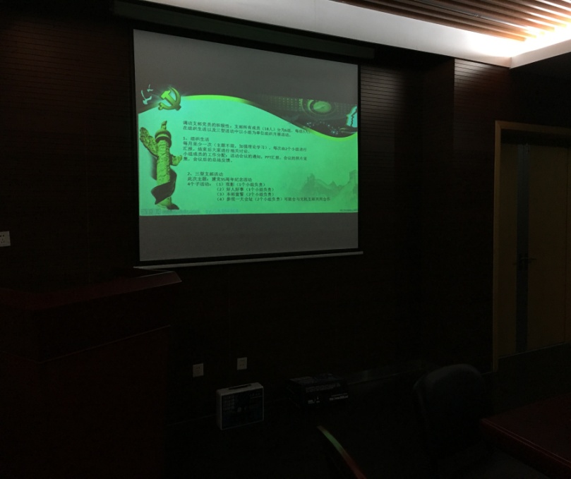 本次组织生活主要讨论了本学期的支部活动规划:1、组织生活;2、三型支部活动。为了充分调动学生党员的积极性,党支部书记将18名学生党员分为6个小组,每个小组3人,在之后的组织生活以及三型活动中以小组为单位,每个小组在今后的活动中均需承担一定的责任,旨在令每位党员都能领悟每次活动的意义,明白作为一名党员应该对支部同学以及自己负责。首先针对组织生活:以后每月有2个小组进行汇报,主要针对理论学习,提高党员的党性修养,汇报结束后每个小组提供一个论题,大家一同加以讨论;其次针对三型支部活动:此次本支部的三型支部活动主题为建党95周年纪念活动,分为4个子活动,6个小组的成员将分别负责4个子活动中的一个获得,以展现大家的主人翁意识,自主自觉地组织策划负责的活动。