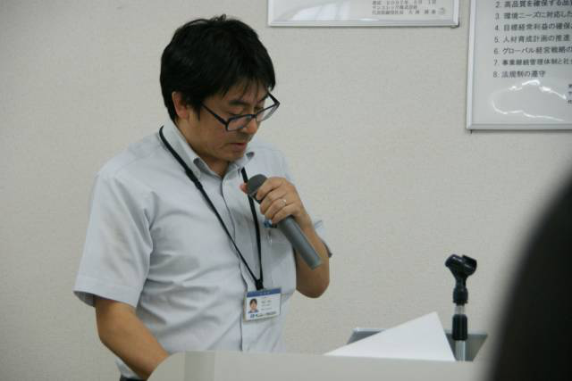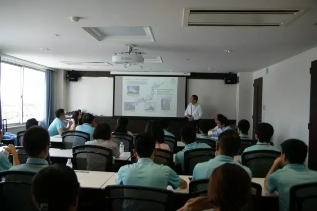 访问团于下午两点半准时到达参观地点。在与会社社长及各部代表问好之后,参观活动正式开始。首先由大西社长致欢迎词,之后由黄先生、多田小姐和森田先生分别介绍了会社、电子材料事业部以及建筑材料事业部的基本情况。随后,同学们就介绍中相关产品的性质等提出了一系列专业性较强的问题,会社相关部门代表也耐心地作出了回答。