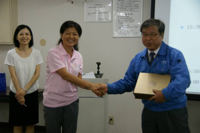 参观完毕后,团队返回会议室,王凌凌副书记代表交流团队向甲谷教授赠送纪念品。