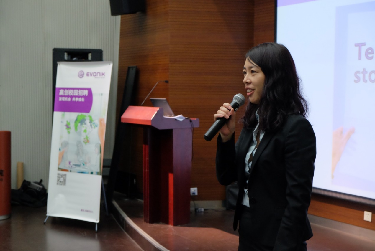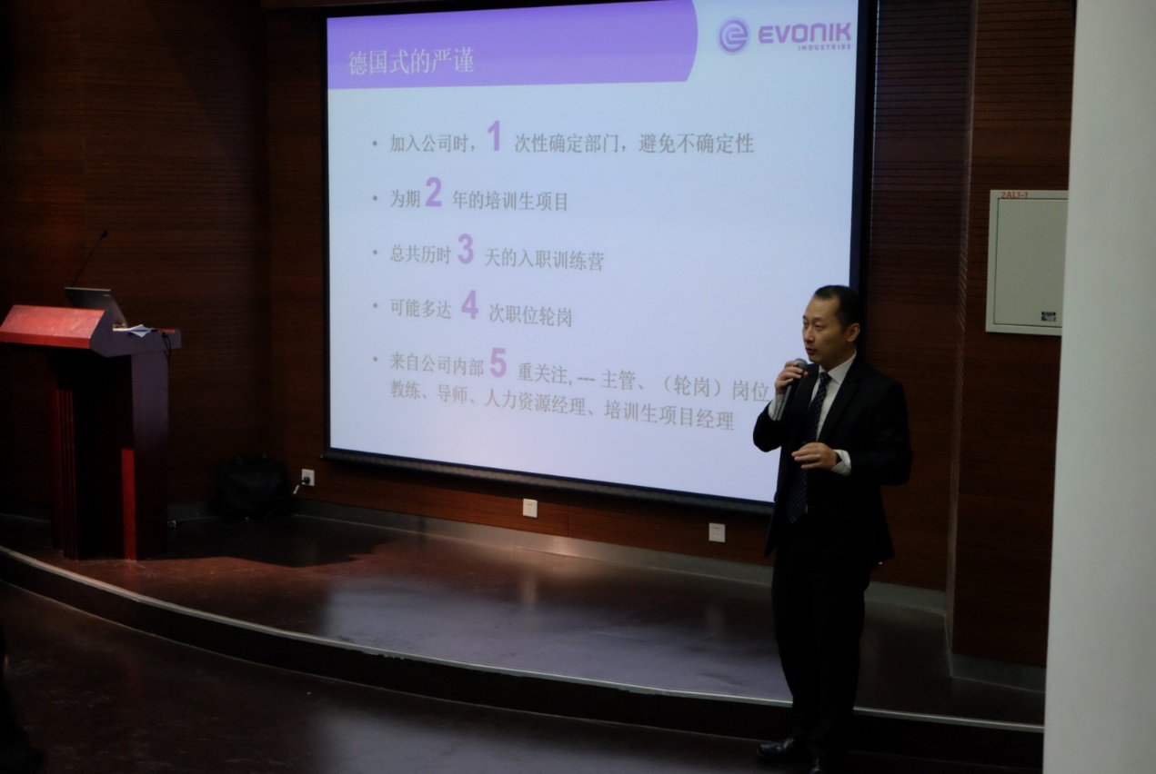 赢创大中华区总裁柯乐施博士首先介绍了赢创工业集团的概况、文化理念以及战略目标等情况,陈金秋博士分享了个人在赢创集团20年的发展成长经历,提到赢创的发展理念与pg国际电子网站的追求“严谨、求实、团结、创新“的校训以及“同舟共济”的合作精神不谋而合,陈金秋博士也是我校留德预备部1987届留德学生。程大年介绍了赢创2017年岗位需求和赢创管培生项目,陆芳作为同济校友分享了她在赢创成长的十年经历,深刻体会到赢创以人为本的人才培养模式。