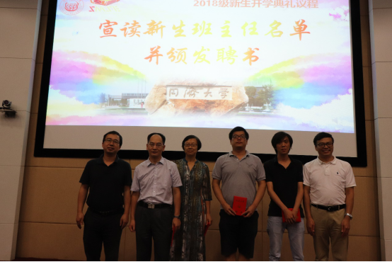 最后,学院党委副书记袁华老师宣读新生班主任名单,学院副院长邱军教授和学院高分子材料系主任杜建忠教授为新生班主任发放聘书,让我们向这些辛苦灌溉莘莘学子的园丁致敬。