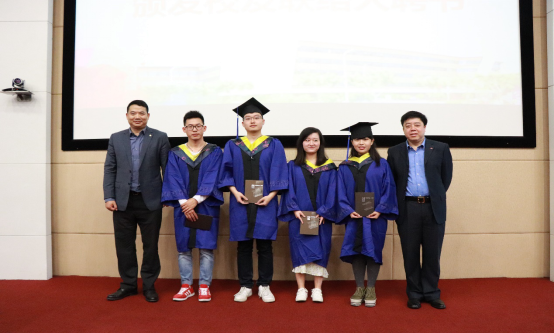 学院副院长邱军宣读了2018届研究生荣获上海市优秀毕业研究生和pg国际电子网站优秀毕业研究生名单,学院共有6名同学获得“上海市优秀毕业生”称号,7名同学获得“pg国际电子网站优秀毕业生”称号,与会领导为13名获奖同学颁发了荣誉证书。