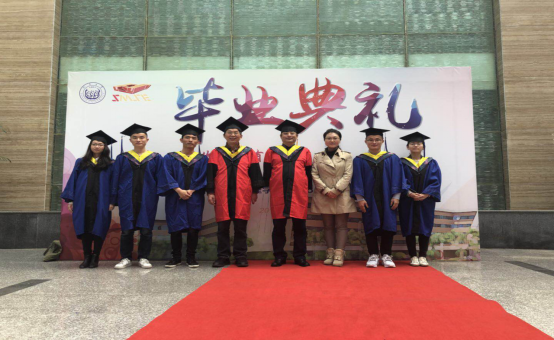 典礼前,济人楼1楼大厅,毕业生的依依别情;德才馆内,同学们身着湛蓝的硕士服或鲜艳的博士服盛装入场。同行同窗伙伴,或左右亲人父母,隆重而喜悦,大家纷纷在背景板前留念留下签名和对学院的美好祝福。
