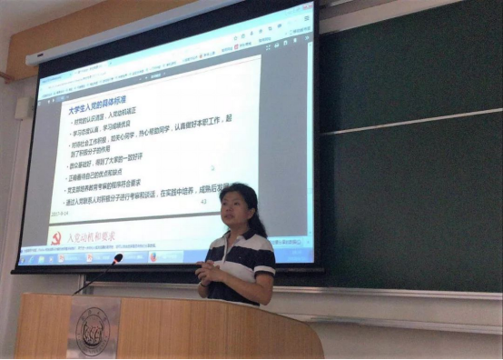 随后,王凌凌老师向全体本科新生讲授了第一堂党课,同学们以热烈的掌声欢迎。