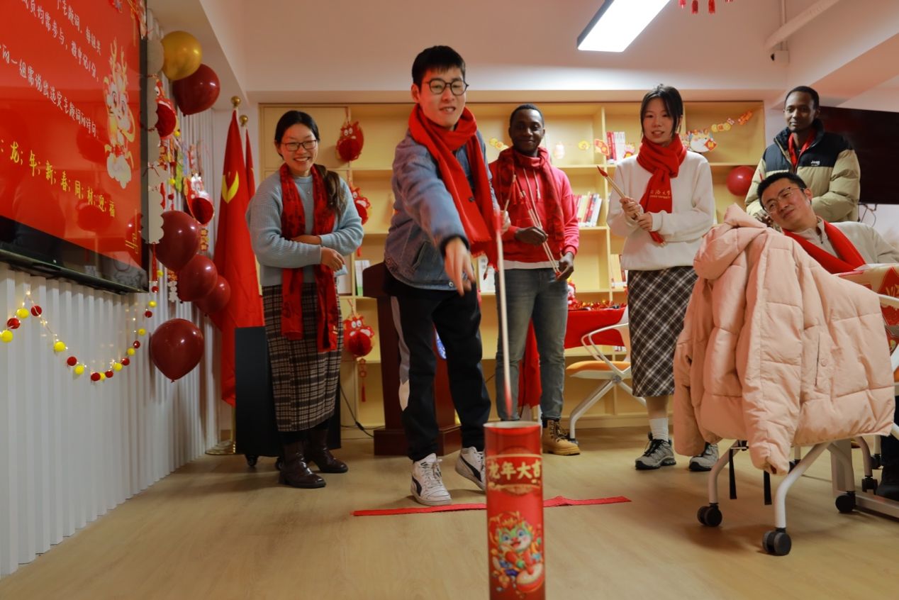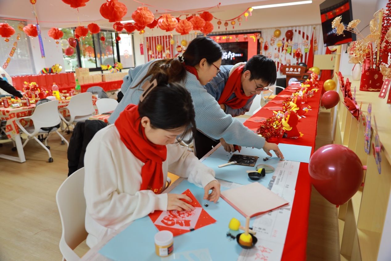 玉兔辞岁留好运,金龙迎春展宏图。2024年2月1日,pg国际电子网站于嘉定校区举行“迎新春同筑中国梦,辞旧岁共话材愿情”2024年新春慰问系列活动。今年寒假,学院本硕博共计13人,因科研和学习需要,选择留校过年。为了令留校学子真切感受同济材料大家庭的温暖和关怀,学院依托茶话年俗、乐猜灯谜、畅谈收获、体验拓印、展望未来、投壶射礼等形式多样、内容丰富的活动,向同学们致以诚挚的新春祝福,传递育人温度,厚植家国情怀,汲取奋进力量,营造祥和喜庆的节日氛围。