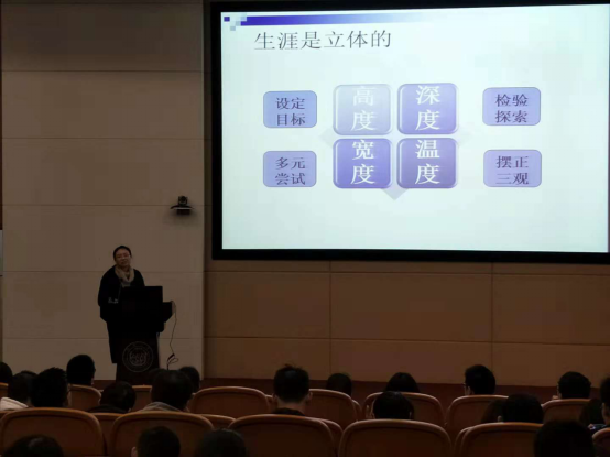 首先方雅静老师简要阐述了关于职业生涯规划的基本内容,她指出职业生涯是立体的,应体现高度、深度、宽度和温度四个维度。“高度”,大学生选择岗位,面对不同就业去向的时候,充分利用pg国际电子网站为同学们提供的平台,树立适宜的目标;“深度”,职业目标要经得住检验,同时不断探索、挖掘潜能;“宽度”,多元的尝试,突破定式思维模式,找到适合自己的工作,创造自己的职业;“温度”,协调工作,协调家庭,处理好人际关系。