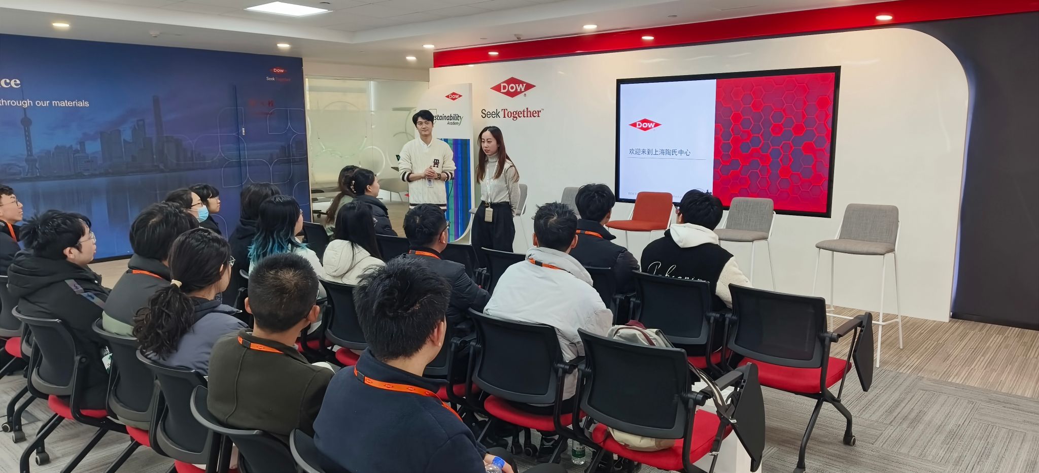 参访伊始,陶氏公司校招负责人陆振辉先生和宋雨欣女士对学院师生的到访表示热烈欢迎,并详细介绍了公司的发展历程、业务范围以及未来的战略规划。随后,在同济材料2012级本科校友兰浩然的热情带领和深度讲解中,师生们参观了陶氏公司的亚太学习交流中心、世界顶级实验室以及全球产品展示中心。整洁有序的工作环境、先进高科技的研发设备、专业且充满活力的工作团队及开放包容的工作氛围给学生们留下了极其深刻的印象,并在切身的体验中了解到如何利用新型科技为全球绿色转型做出积极贡献,直观地感受新质生产力是如何成为推动社会进步和发展的强大引擎。