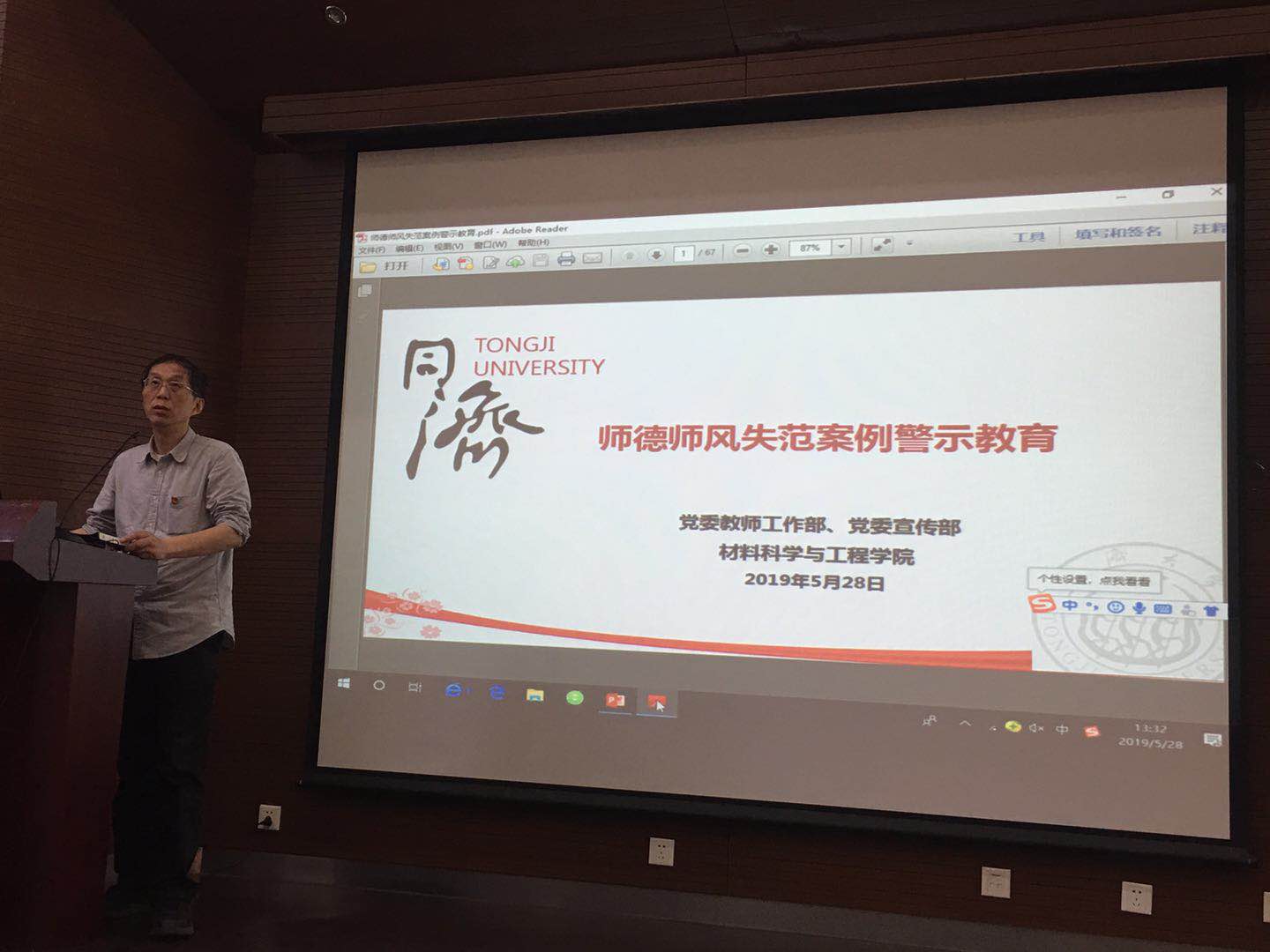 5月28日下午,学院2018-2019学年第二学期第四次全院大会在德才馆二楼报告厅召开,会议由学院党委书记王中平主持,学院党政领导班子成员、一百余名教职工出席会议。
