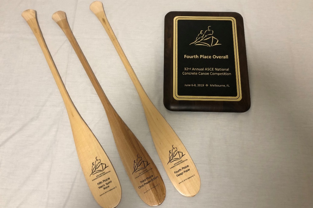 由美国土木工程师协会主办的混凝土轻舟比赛(Concrete Canoe)由设计报告(Design Paper)、演讲答辩(Oral Presentation)、成品展示(Final Product)和划船竞速(Races)四组单项竞赛。该竞赛是对参赛队员科研创新、语言表达、动手实践和体育竞技能力的综合锻炼,同时也是大学生国际交流的良好平台,每年吸引来自全世界不同国家和地区的250余支大学生队伍参与其中。2019年4月,我校混凝土轻舟队在中太平洋赛区(Mid-Pac Conference)成功卫冕并晋级第32届全美总决赛。