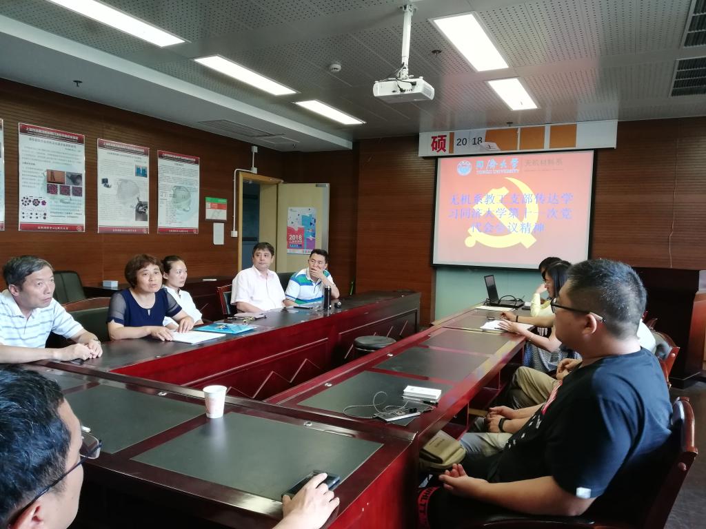 7月9日,中国共产党pg国际电子网站第十一次党代会刚刚结束,学院党委就安排布置传达学习学校党代会精神。7月10日下午,四个教工党支部分别在德才馆召开了支部大会,党代会代表王中平书记参加了建筑材料党支部、袁华副书记参加无机非金属党支部、王凌凌副书记参加了行政/实验室联合党支部、邱军副院长与杜建中系主任参加了高分子党支部的学习并传达了校党代会精神。