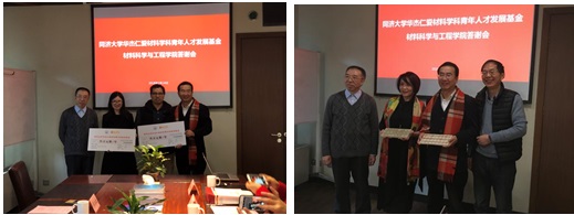 答谢会上,胡金华名誉理事长和廖宗廷秘书长共同为王际超和李聪玲博士后颁发了资助基金证明。两位博士后分别表达了对华杰仁爱基金以及两位杰出校友的感激之情,基金的受赠减少了博士后研究期间的后顾之忧,可以更加安心潜心科研,同时深切钦佩校友们的反哺母校的善举和善德,受赠的不仅仅是资助,更多的是为人的胸怀和品德。博士后们承诺,一定秉承“严谨求实,团结创新”的同济精神,不忘初心,潜心科研,为学院建设和材料学科的发展作出努力。