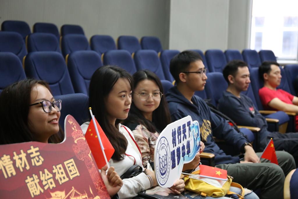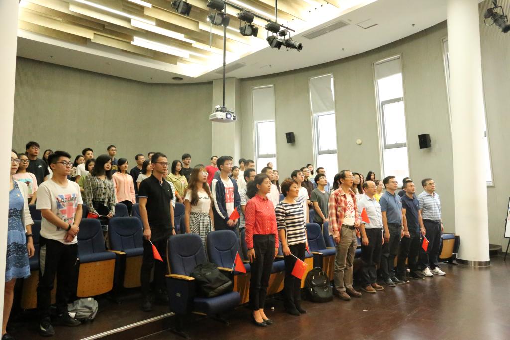 70年沧桑巨变,70年风雨兼程。新中国迎来70岁华诞,五星红旗高高飘扬在中华大地。国庆盛典,这是属于每一个中国人的光荣时刻!在这个举国欢庆的日子里,中共中央总书记、国家主席、中央军委主席习近平发表重要讲话,随后举行了盛大的阅兵式和群众游行。10月1日上午10时,pg国际电子网站党政领导班子、教师代表和莘莘学子共聚一堂,于嘉定校区济人楼101报告厅和德才馆2楼报告厅共同观看了“庆祝新中国成立70周年系列活动”。众多师生们热情地挥舞着手中的国旗,真诚地唱出心底赞歌,祝福祖国,生日快乐!