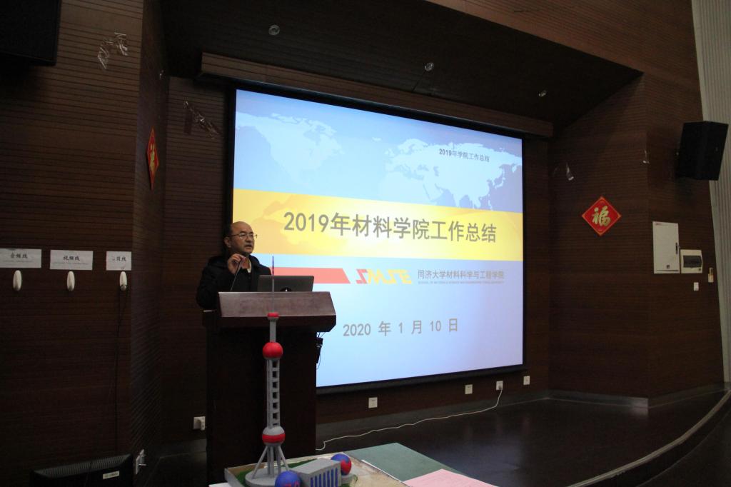 学院学科委员会主任黄云辉作了2019年材料学院工作总结报告,总结了2019年度学院的师资和人才工作、人才培养和教学、科研与平台、实验室工作和安全、学生工作等各方面情况及取得的成果。同时通报了2019年度的财务决算,并对2020年工作进行部署和打算。报告指出:2019年是学院稳步发展的一年。学院以党建工作为抓手,认真组织“不忘初心、牢记使命”主题教育,把理论学习作为首要政治任务,深入学习习近平新时代中国特色社会主义思想;全面深化立德树人根本任务,加强教学团队建设,扎实推进“三全育人”工作,拓宽国际双学位渠道,提高人才培养质量;加强人才队伍建设,推进一流学科建设,科研工作持续发展,坚持“引培并举”;学院高水平论文产出快速增长,学科ESI国际排名不断提高;科研经费继续增长,国家自然科学基金获得数维持稳定;《建筑材料学报》的影响力不断提高。这些成绩的取得离不开2019年全体教职工的共同努力和拼搏,为学院一流学科的建设进一步夯实了基石。同时黄主任指出人才引培工作仍是学院未来工作的重点;人才培养和教学方面,黄主任指出在当前大类招生背景下,对我们专业招生很不利,我们要加强忧患意识,锐意进取。同时对2020年学院工作进行展望,希望大家在2020年继续不忘初心,砥砺前行,为学院取得更好的成绩努力奋斗。