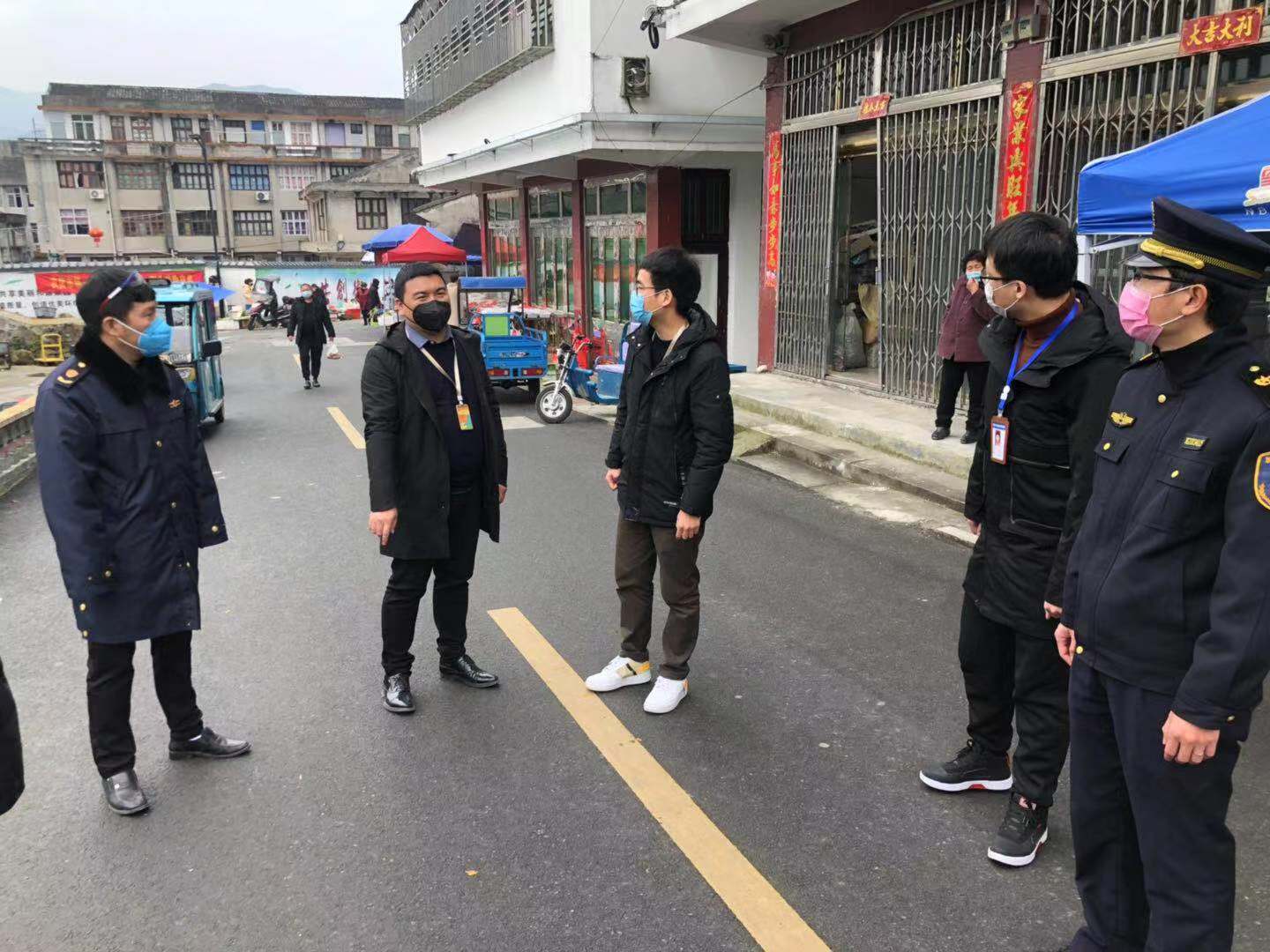 随着防控工作推进,曹村镇逐步关闭了除新西路菜市场之外的所有小型马路市场,同时加强对新西路菜市场三个进出口的管理,包括洪万领在内的机关干部等组成的队伍,每天在天蒙蒙亮时,便在菜市场卡口到位。“乡下的山风有点大,清晨的温度有点低,嘴里冒出的热气从口罩的缝隙中透出来使整个眼镜都雾蒙蒙的一片,冷了就搓两下手,原地打转走两圈,但大家都无怨无悔,一直坚守自己的岗位。”洪万领这样形容他们的驻守工作,在这段时间,他和同事们以单位为家,几乎是轮轴转。