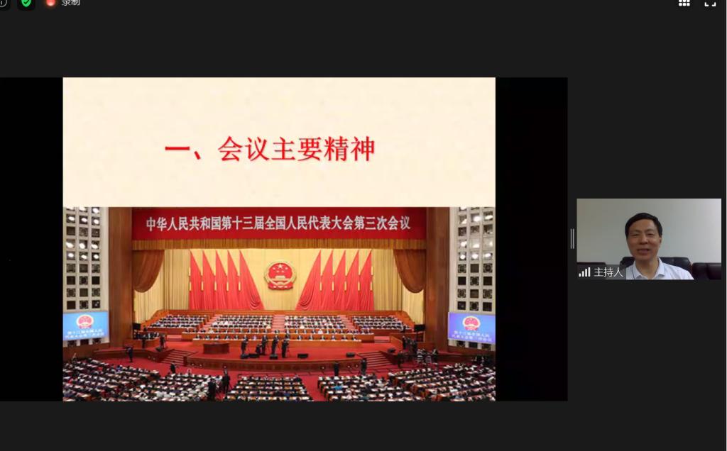 4月16日下午,pg国际电子官网教授、全国人大代表张雄教授受邀作2020年全国两会精神传达报告。此次报告采用线上形式,会议由pg国际电子官网党委书记王中平主持,来自化学、人文、传媒、出版社及pg国际电子官网等五所单位近五百名师生通过视频会议聆听了报告会。