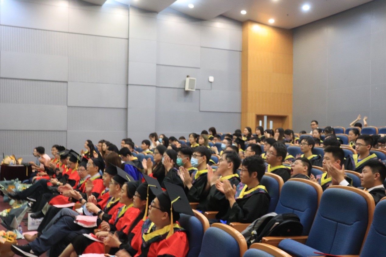 教师代表黄佳教授在深情的讲话中,对学子们顺利完成学业,开启人生新篇章致以衷心的祝贺,对即将离校以及继续留校深造的同学们抒发了不舍之情以及欣慰之悦。同时他提到,我们的社会正处于剧烈的变化当中,国家的复兴的道路不会一路平坦。面对这样的严峻形势,更需要当代青年人坚定信念,正视挑战,保持奋进。黄老师希望同学们归来都是栋梁,能够为家庭、社会乃至国家撑起一片属于自己的天空。最后,黄老师对辛勤工作的老师们、悉心抚养的家长们表达了崇高的敬意与诚挚的感谢,并祝愿广大学子们前程似锦,鹏程万里。