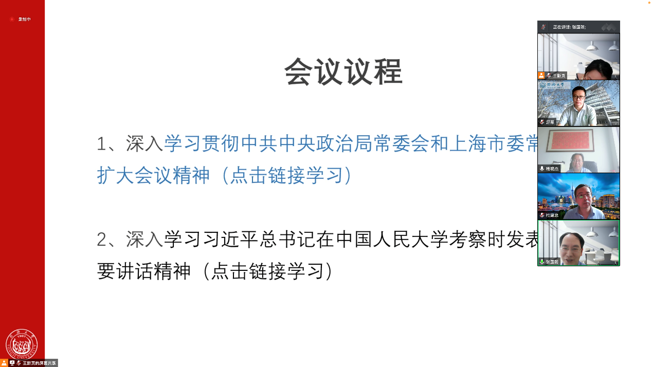 2022年5月7日,pg国际电子网站党委召开中心组扩大会议,深入学习贯彻中共中央政治局常委会和上海市委常委会扩大会议精神,学院党委书记杨晓杰主持会议,党政领导班子、教工支部书记参加会议。