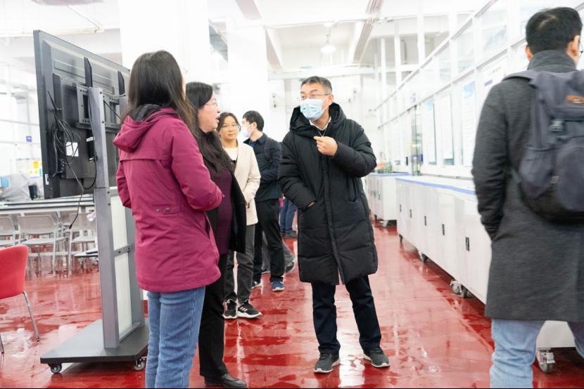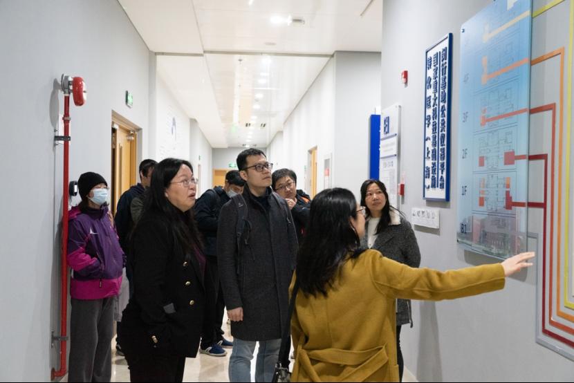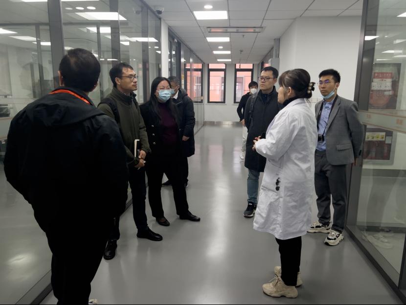 随后,调研队伍来到上海交通大学分析测试中心,在中心副主任何琳的陪同下参观了电镜中心、谱学中心等相关实验室,针对仪器管理、功能区间布局等问题进行了详细的咨询和交流。