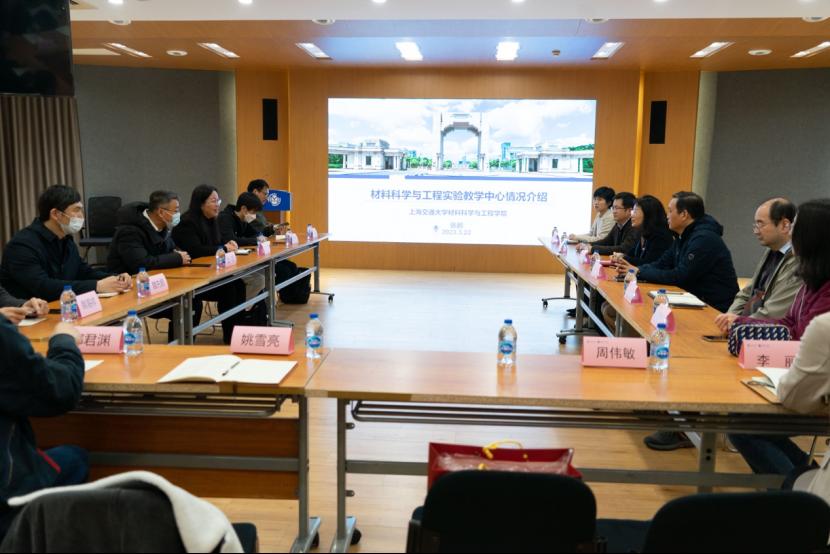 杨晓杰一行首先来到上海交通大学pg国际电子网站。在参观院史展馆后,双方重点就实验教学中心建设及实验教学建设等方面工作展开交流,上海交通大学pg国际电子网站党委书记孙丽珍、副院长冯传良及交通大学实验管理中心相关教师详细介绍了交通大学材料学院实验教学中心的基本情况以及在实验中心队伍建设、实验室安全管理、虚拟仿真实验建设、实验教学课程建设等方面的宝贵经验。交流结束后,调研队伍前往交通大学材料学院实验教学中心实验室参观。