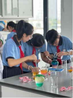 首日的活动有高分子吸水树脂、陶瓷彩绘和制作硫酸铜晶体玫瑰,这些实验不仅是对知识的应用,更是对同学们创新和动手能力的挑战。在实验教学中心老师和研究生助教的带领下,大家深入了解了不同材料的结构、性质和原理,积极动手制作,加入自己的想象力和创造力,完成了多个样品的制作。