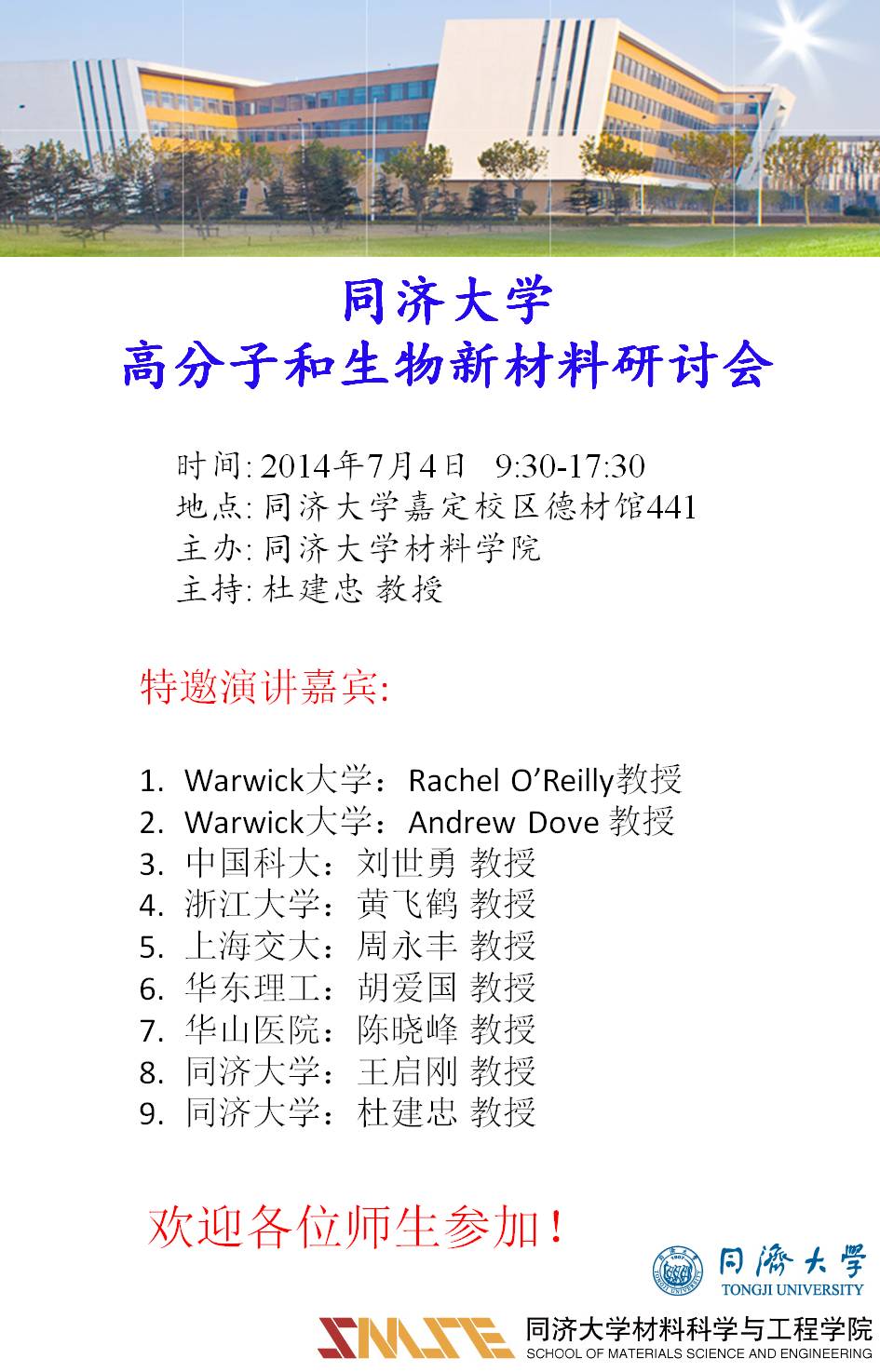 会议通知:pg国际电子网站高分子和生物新材料研讨会