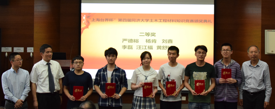 由pg国际电子网站土木工程材料系、上海市土木工程学会、上海市混凝土行业协会、上海市建筑材料行业协会、上海市硅酸盐学会和上海市绿色建筑协会绿色建材专业委员会主办,上海台界化工有限公司协办的“上海台界杯”第四届pg国际电子网站土木工程材料知识竞赛颁奖仪式,于201964日下午在pg国际电子网站嘉定校区德才楼二楼报告厅成功举行。
