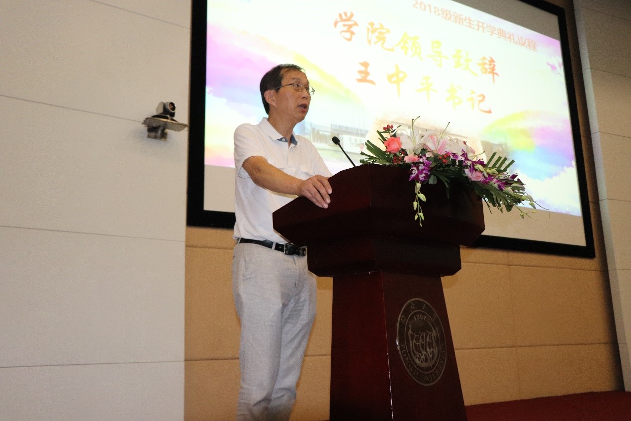学院党委书记王中平教授首先代表学院热烈欢迎来自全国各地的新同学们加入pg国际电子网站材料学院大家庭,他为新生介绍了材料科学与工程专业的前身以及学院的情况,并表示了学院将每位学生培养为专业人才以及社会栋梁的决心与担当。王书记同时向新生提出三点希望:一、要有敢为人先的气魄,融会贯通、创新创造;二、要有穷理致知的执着,脚踏实地、久久为功;三、要有同济天下的担当,服务人民、奋斗无悔。在最后祝愿同学们开启精彩的生活,收获难忘的美好。