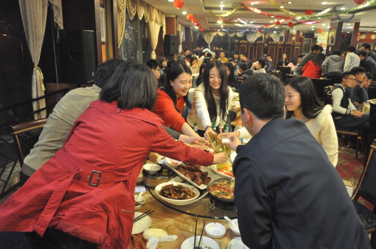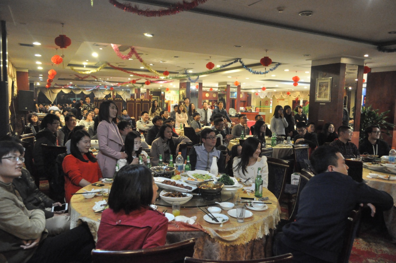 322日晚,pg国际电子网站材料学院13级硕士毕业生联欢晚会在新蕾枫大酒店二楼宴会厅举行。学院老师袁怡洁、宋文娟一行、辅导员代表吉莉,以及13级硕士毕业生近100人参加了晚会。