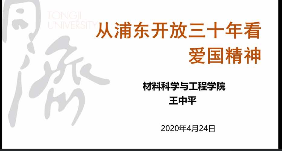 王中平老师主要讲述了从改革开放以来以浦东开发为中心阐述了中国发展的艰辛历程,过去三十年中,中国实现了由站起来到富起来的跨越,目前我们正向强起来跨越,浦东从过去的穷乡僻壤到如今经济发展的龙头,印证了党和国家改革开放决定的正确性,中国经济实现了腾飞,但目前正是百年未有之大变局,疫情暴发,经济整体衰退,港独台独以及一些西方政客仍在叫嚣,在这种情况下,我们更应该坚定思想,时刻与党和国家保持一致,国家的强大需要我们每个人贡献力量,我们作为同济学子,更应该明确自身责任,加强思想自信,民族自信,对一些基本事件以及大是大非面前,有自己的判断,不被一些西方言论蛊惑,王中平老师也提及到,爱国主义是一个人最基本的道德准则,爱国主义就要求我们自身命运与国家命运共戚,对一些侮辱国家侮辱人民的言行及人群予以坚决抵制。背叛国家是最可耻的行为,疫情也让我们看到,在灾难面前,党领导中国人民团结一致的力量是多么的强大,这也代表着我们国家的治理能力已经得到了增强,国家的发展与我们休戚相关,浦东的发展也有同济学子的一份贡献,将来中国走向强大,需要的是我们每位爱国青年做出自己的贡献,因此,我们应该努力学习,明确责任,回报祖国。