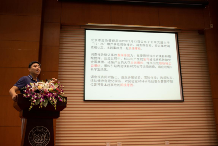 姚武老师首先强调了实验室安全的重要性,以近几年来沪内外各高校的典型实验室安全事故为例,强调了实验室安全风险时刻潜伏在我们身边,我们能做的就是要强化安全意识,把防范工作做在平时,做在细节。