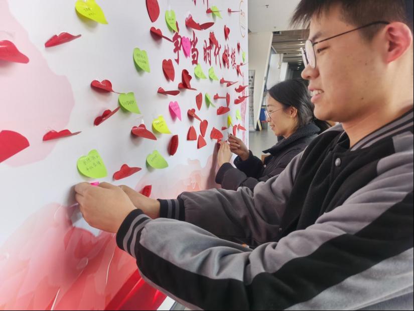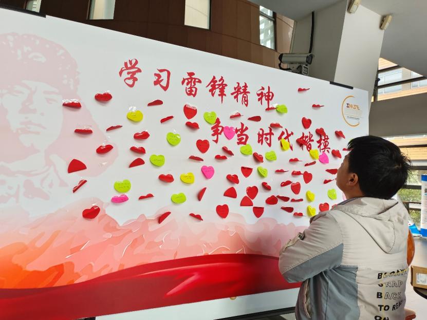 学院师生在五彩缤纷的便签纸上记录身边的“活雷锋”,书写对于雷锋精神的深刻感悟,并郑重地张贴在展板进行展示,描绘了一幅幅温馨感人的互助情景,以此传递爱心善意,分享点滴感动。