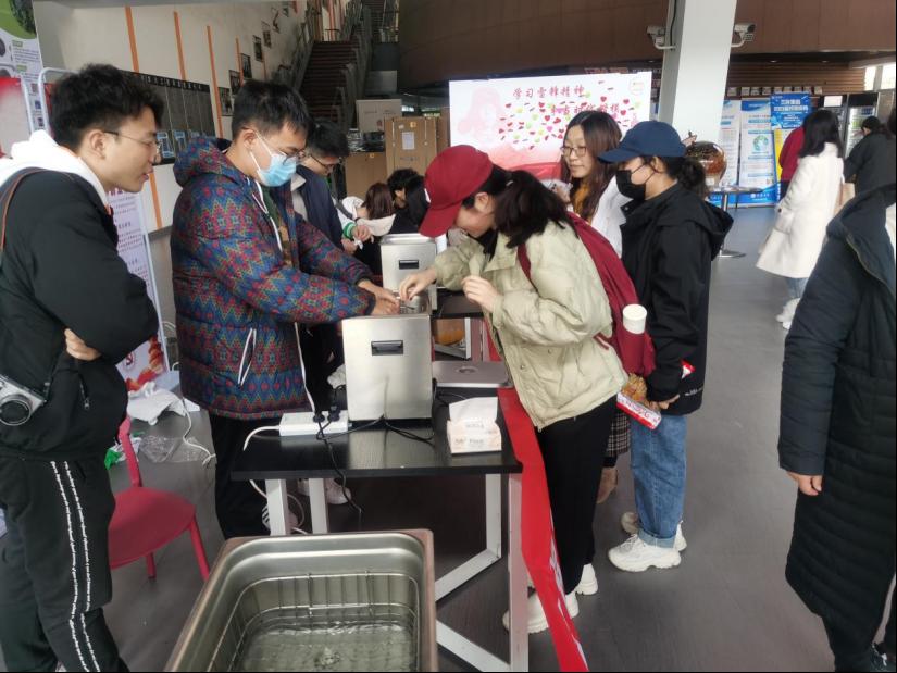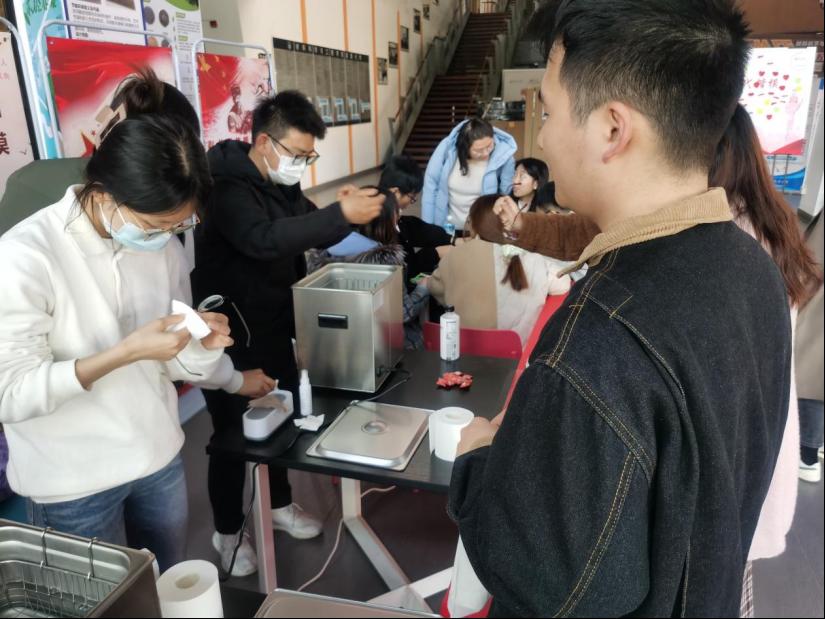 利用实验室的超声波清洗机为师生义务提供眼镜清洗服务。活动现场,志愿者们手法娴熟,耐心细致地为每一位老师同学服务,弘扬并践行雷锋精神,以奉献诠释其深刻内涵,以青春奏响时代凯歌!