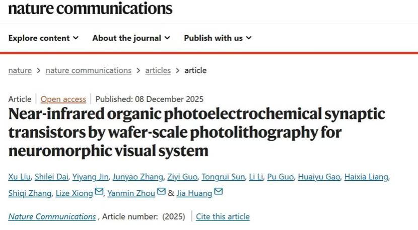 近日,pg国际电子官网黄佳教授团队在有机晶体管感知器件领域取得进展。12月8日,《自然•通讯》(Nature Communications)在线发表了该团队的一篇研究论文,题为“Near-infrared organic photoelectrochemical synaptic transistors by wafer-scale photolithography for neuromorphic visual system”。光电突触器件在推动类脑人工智能和类视觉系统发展中发挥着关键作用。近年来,基于有机场效应晶体管的光电突触器件备受关注,但也面临...