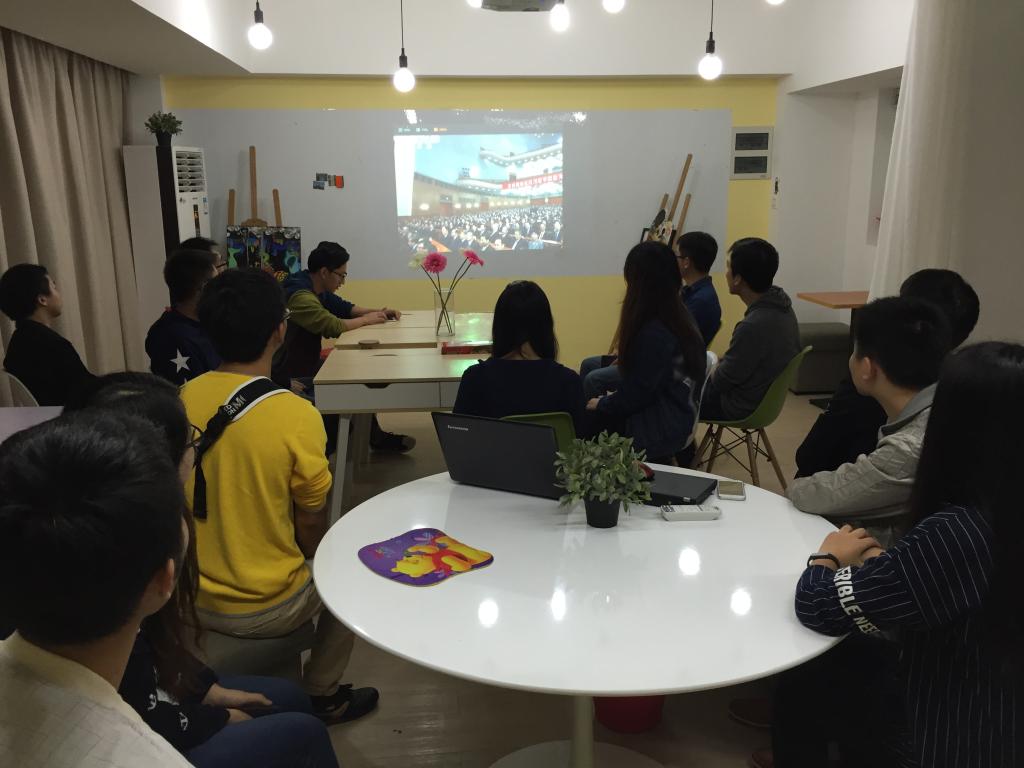 2016年10月21日10点,pg国际电子网站材料学院的学生党员与班级骨干代表在嘉定校区朋园1号楼学生社区中心共同观看了“纪念中国工农红军长征胜利80周年大会”的网络直播。